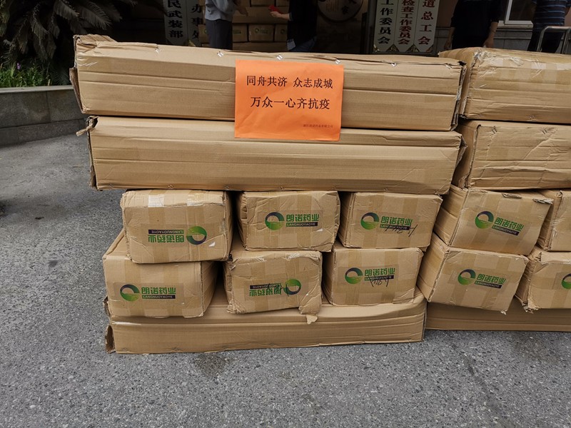 浙江朗诺药业有限公司捐赠了折叠床等物资。