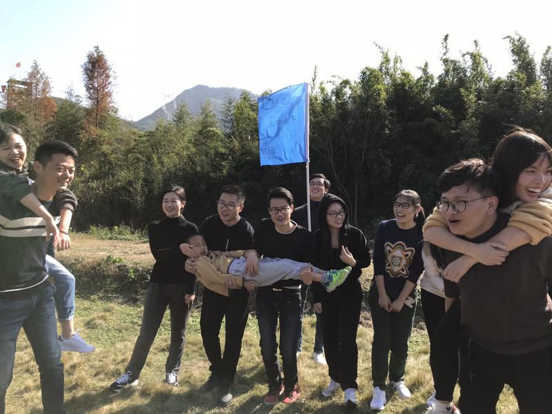 11月24日我们开启了莫干山沈园户外营地探索之旅。到达营地之后,我们组建了两个团队,一个叫“666队”,一个叫“前进队”。然后开始了今天的“神笔马良”游戏对战环节,游戏要求组内所有人员牵制毛笔上所捆绑的绳子,一个指挥人员,齐心协力写好队名,最快完成的一队中午可以坐等吃饭哦,结果“666对险胜”。接着,我们还玩了“春去秋来”和“花谢花开”,把自己当做一朵花,每个人手牵着手紧挨着,把自己的重心依靠在身边的同伴上,就像在工作中,大家就是要相互信任,一起努力。在游戏的过程中时间过得很快,午餐的时间到了。虽然之前说赢的队可以坐享美食,但是到真正劳动的时候,全体人员撸起袖子干活,大家各显神通,把自己的拿手菜给大家品尝。男士担任大厨的角色,女士帮忙洗菜、切菜,打下手,在大家齐心协力下,一盘盘美味的菜肴呈现在大家的眼前。